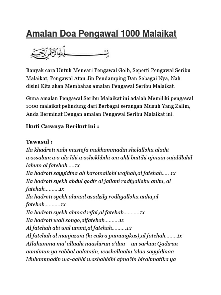 Amalan Doa Pengawal 1000 Malaikat Pdf